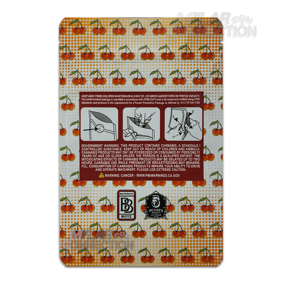 Backpack Boyz White Cherry Gelato Empty 3.5g Dry Herb Flower Mylar Bags Packaging Smell Proof